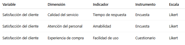 Incluso cuando la universidad no la solicita explícitamente, la tabla de operacionalización de variables ayuda a ordenar la lógica de la investigación y facilita el desarrollo de la metodología.
